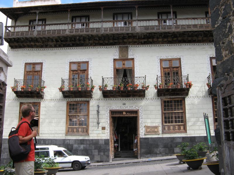 Nach dem Essen fahren wir durch die Berge weiter bis La Laguna, der ehemaligen Inselhauptstadt und Universitätsstadt Teneriffas. In der Altstadt gibt es zwei größere Straßen, gesäumt von alten Häusern meist mit Balkonen, durch die man sehr schön flanieren kann. Besonders interessant ist das Convento Santa Catalina der Dominikanerinnen. Diese Nonnen lebten in Klausur. Daher gibt es einen riesigen gänzlich mit Holz verkleideten Balkon. Durch die Ritzen in der Verkleidung konnten die Nonnen auf die Straße und den Platz schauen, ohne selbst gesehen zu werden.