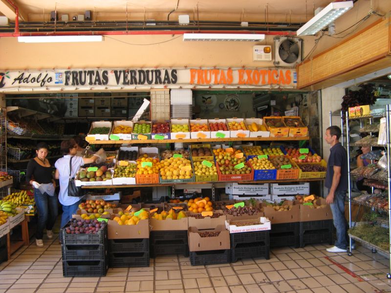 Nachdem wir den Einkauf zum Boot gebracht haben, gehen Helene und ich auf den Samstagsmarkt, während Eric noch beim Shipchandler vorbeifährt und dann das Auto zurückbringt. Der Mercado de Nuestra Senora de Africa ist im Innenhof eines Gebäudes mit einem hohen Turm und das Angebot von Obst, Gemüse, Fleisch, Fisch und Gewürzen ist ausgezeichnet. Das Einkaufen dort macht uns viel Spaß und wir würden gerne viel mehr Zeit dort verbringen, um die Stimmung und die Gerüche dort zu genießen.