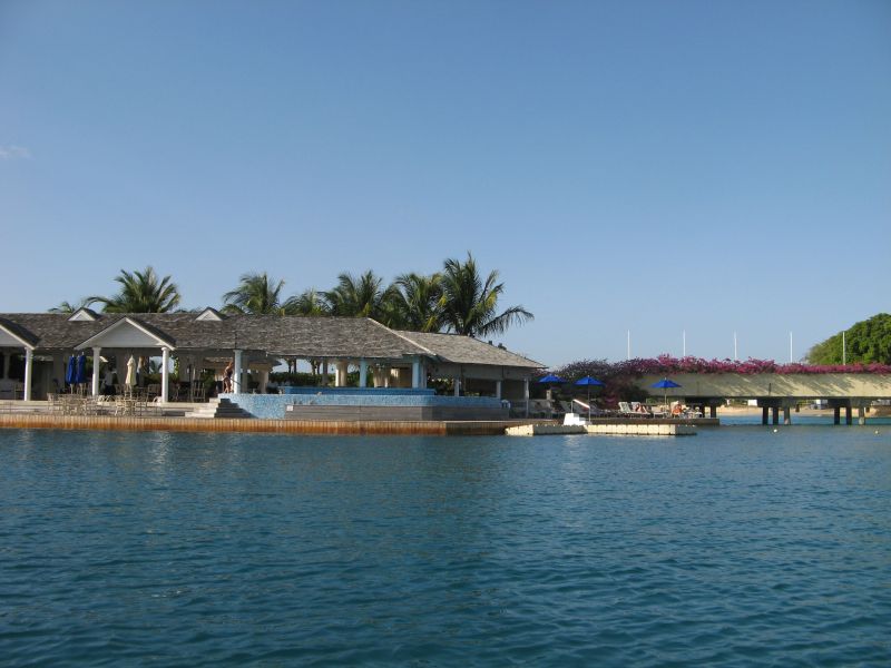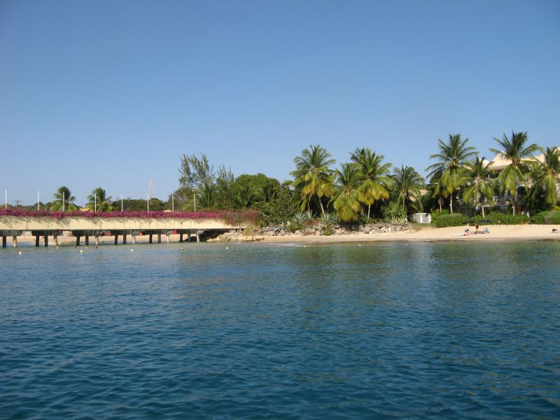 Es dauert dann noch bis zum späten Nachmittag bis wir Port St. Charles erreichen. Es handelt sich hier um einen privaten Luxushafen, wo man als kleiner Yachtie nur anlegen kann zum Einklarieren. Nachdem wir am Holzpier angelegt haben, stellt sich heraus, dass es einen ordentlichen Schwell gibt. Dazu legt noch eine große Motoryacht an der Tankstelle hinter uns an, so dass nur ein Meter zwischen unserer Windsteueranlage und ihrem Rumpf ist. Bei jeder Welle drohen die Klampen am Steg als auch an Bord nachzugeben. So legen wir wieder ab, gehen an eine Mooring und kommen später mit den Dinghi an Land zum Einklarieren.