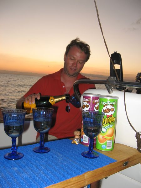 Am nächsten Tag kommt die Bomika mit Charly & Lisa. An diesem Abend ist dann endlich die Zeit gekommen, den Champagner, den uns Freddy & Christian für diese Gelegenheit geschenkt haben, zu köpfen. Danke für das Geschenk, er hat phantastisch gemundet.