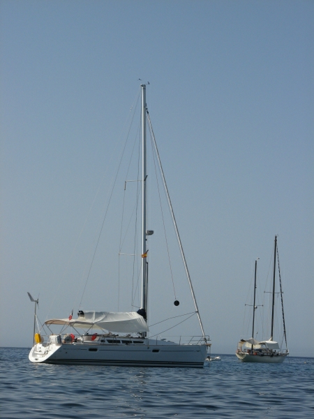 Unser bisheriges Hauptsegelgebiet waren die östlichen griechischen Inseln, die Kykladen und der Dodekanes. Abhängig von der Windrichtung haben wir eine passende Bucht gesucht und dort in Ruhe geankert. Immer in der Vorsaison und nicht gerade im überfülltesten Segelrevier. Wie wir schon im letzten Artikel beschrieben haben, zählen die Ankerkünste der Spanier nicht gerade zu den berühmtesten und außerdem haben sie generell auch einen Hang zum Kuscheln. Die Bucht kann gar nicht groß und leer genug sein, sie werden sich möglichst nahe an dein Boot legen. Der Wind dreht mehrmals täglich, daher strömen teils gut ½ Meter hohe Wellen unabhängig von der lokalen Windrichtung in die Bucht und beginnen das Boot ganz mächtig zu schaukeln. Dazu kommt, dass es am spanischen Festland hauptsächlich Felsküste gibt, wodurch die Wellen nochmals zusätzlich reflektiert werden. Wir beschließen also, wieder zu den kristallklaren Sandstränden der Balearen zurückzukehren und segeln wieder nach Ibiza.