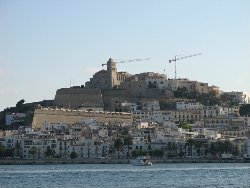 Beinahe hätte es nicht geklappt, denn kurz vor dem Ablegen Donnerstag abends rief noch ein Patient von Thomas an und erst nachdem dieser versorgt war, konnten sie lossegeln. Die Überfahrt war anstrengend, da sie starken Wind von vorne hatten und daher an Schlafen nicht zu denken war. Doch nachdem sie sich etwas ausgeruht haben, fahren wir abends mit dem Bus nach Ibiza. Wir besichtigen die Marinas, nehmen einen Aperitif in einem Café in der Marina Botafoch, der teuersten Marina auf Ibiza und beobachten das dortige Treiben. Aufgemachte Mädels spazieren entlang und hoffen, einen reichen Eigner abzustauben. Mit der Fähre fahren wir dann ins touristische Zentrum von Ibiza Stadt und bummeln durch die Unterstadt. Gaby erzählt, dass das Gebiet um die Altstadt und die Häfen im Winter total ausgestorben sind, sobald die Touristensaison vorbei ist. Jetzt am Wochenende sind jede Menge Menschen wie wir unterwegs, die Geschäfte und Lokale gut besucht. Gaby und Thomas kennen glücklicherweise ein typisch spanisches Lokal, in dem vornehmlich einheimische Speisen serviert werden und wir essen ausgezeichneten frischen Fisch zu einem sehr günstigen Preis. Nach dem Essen laufen wir noch am Markt und dem Aufgang zur Altstadt vorbei, um den Abend mit einem Cocktail im Fischerviertel ausklingen zu lassen. Inzwischen ist der letzte reguläre Bus abgefahren, der Discobus ist jedoch die ganze Nacht halbstündig unterwegs. Als wir nach einem Umweg, da die Einstiegstelle verlegt wurde, endlich beim Bus ankommen, warten dort bereits eine Menge hauptsächlich junger Leute, um das Handgelenk ein oder mehrere bunte Eintrittsbänder der Discotheken geschlungen. Durch erfolgreiches Drängeln schaffen wir es in den zweiten Bus, der uns infolge der „Musik“beschallung mit einem Gehörschaden und einem deutlich verringerten IQ zurück nach San Antonio bringt. Wir sind alt!