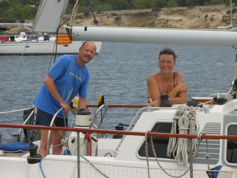 Am ersten Augustwochenende besuchen uns Gaby und Thomas, die wir am spanischen Festland kennengelernt haben, mit ihrer Abraxas in San Antonio auf Ibiza. Thomas ist Urologe und hat mit seiner ersten Frau und seinen beiden Kindern mehrere Jahre auf der Abraxas gelebt und ist von Holland aus in Europa und Nordafrika gesegelt, Gaby lebt mit ihrer Tochter seit sieben Jahren in Spanien, zunächst einige Jahre auf Ibiza, danach in Denia und ist mit ihrer Firma „Gabys Yachts“ als Yachtbrokerin selbständig tätig. Ihre tolle Unterstützung als TO Stützpunktleiterin haben wir bereits im letzten Artikel erwähnt. Dies kann man aber nicht oft genug loben, da sie uns auch noch unseren TO Stander bis nach Ibiza gebracht hat.