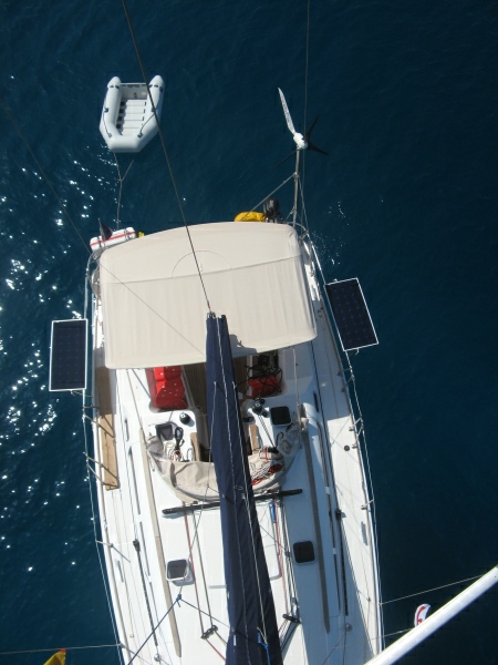 Am 13. August darf ich nochmals in den Mast hinauf, da sich der Radarreflektor verschoben hat und das Großfall immer wieder darin hängenbleibt. Zwei Tage später erkunden wir die Bucht Codolar auf der Suche nach einem Supermarkt, den wir erst in Coralmar finden.