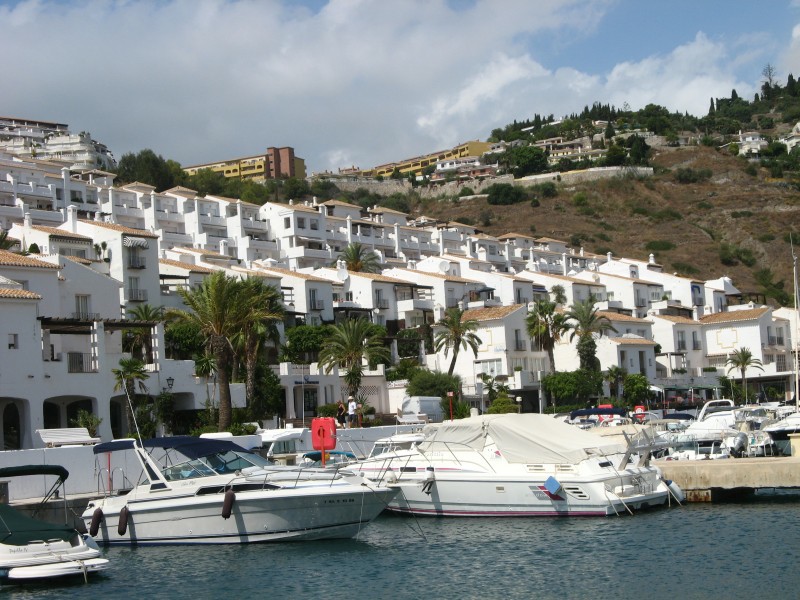 Da wir jetzt genug Zeit haben, können wir gemütlich bis Gibraltar kreuzen und zwischendurch immer wieder Pause machen, um uns auszuruhen und frische Lebensmittel einzukaufen. Zum Baden ist es uns inzwischen zu kalt, da auch hier der Herbst allmählich Einzug hält und als wir einmal eine Landleine anbringen müssen, zieht Eric dafür seinen Tauchanzug an. Nach Granada wird die Gegend dann immer touristischer, anstelle der Sozialsilos gibt es riesige Apartmenthäuser und Hotelkomplexe.