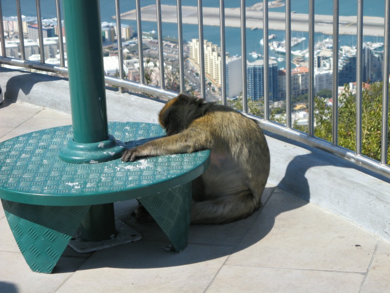 Sonntag Nachmittag am 20. September nähern wir uns Gibraltar. Da der Wind total einschläft holen wir die Segel herunter und fahren unter Motor weiter. Doch nur wenige Meilen vor dem Felsen von Gibraltar setzt der Wind plötzlich wieder ein und weht mit 25 Knoten. Dazwischen gibt es Böen bis zu 35 Knoten. Innerhalb kurzer Zeit bauen sich kurze sehr steile Wellen auf und wir müssen sogar unter Motor kreuzen, da unser Bug sonst pausenlos in die Wellen kracht. Es dauert ewig bis wir endlich den Felsen umrunden und in die Bucht von Algeciras einfahren können. Wir ankern auf der spanischen Seite in einem Vorhafen und besuchen am nächsten Tag Gibraltar zu Fuß. Wir fahren mit der Gondelbahn auf den berühmten Affenfelsen und beobachten die Affen und ins besondere die Affenbabys. Die Aussicht auf die Straße von Gibraltar und die Küste von Afrika ist atemberaubend.