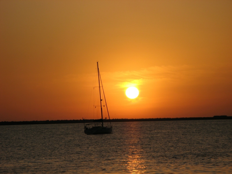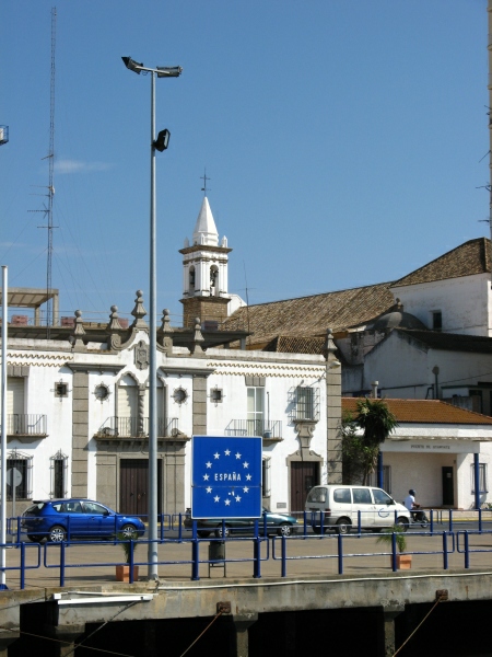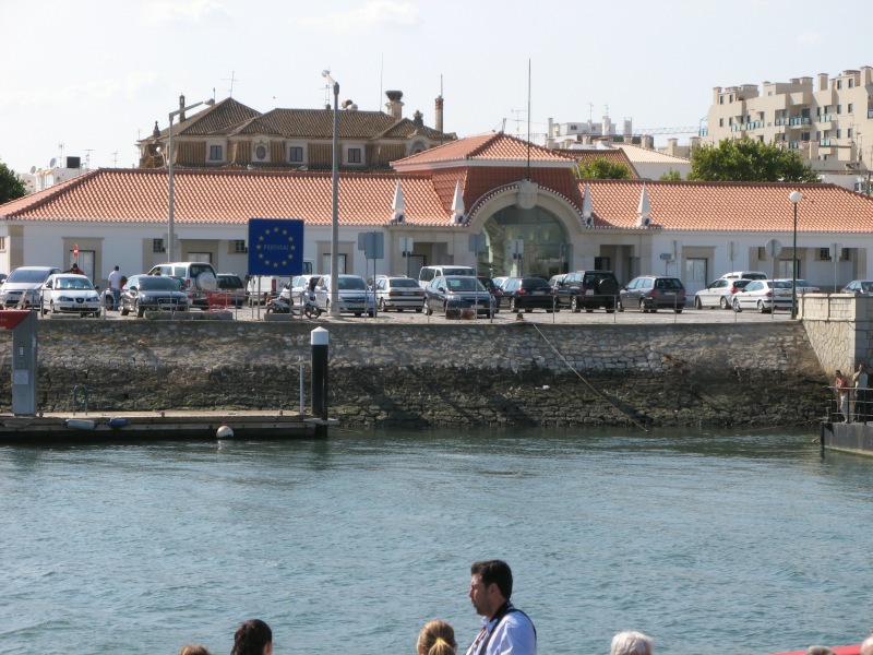 Mit einigen Stopps aber ohne Zwischenfälle segeln wir bis zur spanisch-portugiesischen Grenze. Das einzig ärgerliche war, dass in Landnähe so viele Fischernetze ausgebracht sind, dass wir dazwischen regelrecht Slalom fahren müssen. Die erste Nacht ankern wir im Grenzfluss, danach fahren wir in den Hafen von Vila Real San Antonio zum Einklarieren, so nennt man die Einreiseformalitäten auf See. Im Internet haben wir nämlich gelesen, dass die Portugiesen da sehr happig darauf sind und es eine unheimlich lange Prozedur wäre. Bevor wir von Frankreich nach Spanien gefahren sind, hatten wir uns erkundigt, ob wir da ein- und ausklarieren müssen und man hat uns gesagt, dass das nicht notwendig ist. Wir schreiben noch schnell eine Crewliste und Eric marschiert damit inklusive Pässen und den Bootspapieren in die Capitenerie (Hafenmeisterei), da wir uns nicht mehr erinnern können, in welcher Reihenfolge Hafenmeisterei, Zoll und Fremdenpolizei besucht werden müssen. Doch erstaunlicherweise genügt es, ein Formular in der Capitenerie auszufüllen und Pässe und Bootspapiere vorzuweisen. Auch dass wir in Spanien nicht ausklariert haben, interessiert keinen Menschen. Wir beschließen eine Nacht in diesem Hafen zu verbringen und die beiden Grenzorte zu besichtigen. Mit der Fähre fahren wir zurück nach Ayamonte (Spanien), wo wir am Abend davor mit dem Dinghi nicht anlanden konnten. Es gibt eine sehr hübsche Altstadt nur sind leider am Sonntag alle Geschäfte zu und daher nur wenige Leute auf der Straße, wodurch das ganze etwas leblos wirkt. Zurück in Portugal spazieren wir durch Vila Real. Diese Stadt sieht jedoch so aus als wäre sie auf dem Reißbrett geplant worden und gefällt uns nicht.