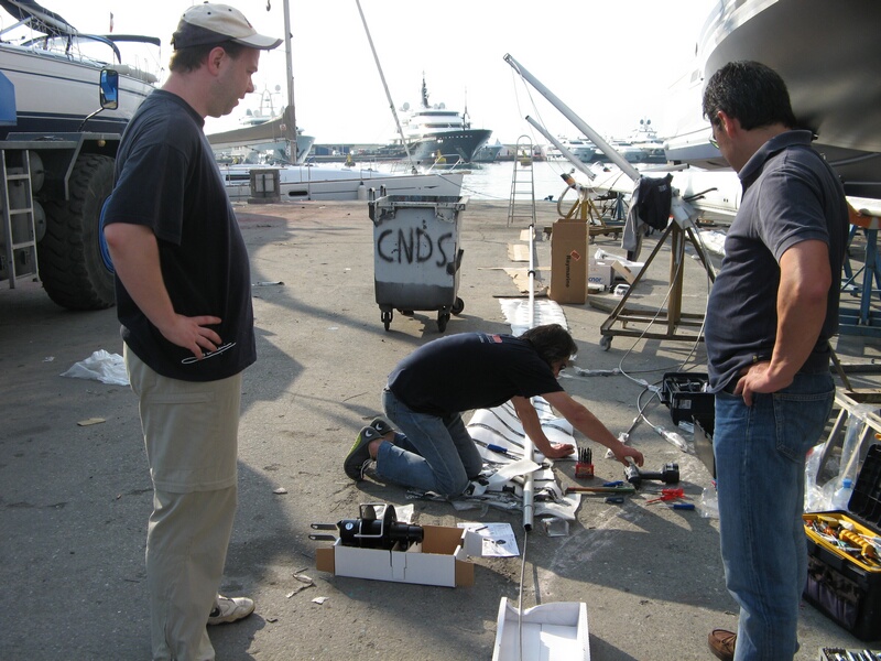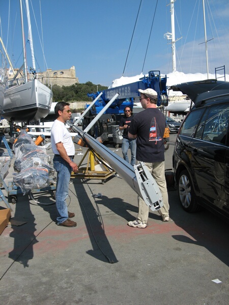 Unser Boot schwimmt schon im Wasser - noch ohne Mast - aber es ist da!