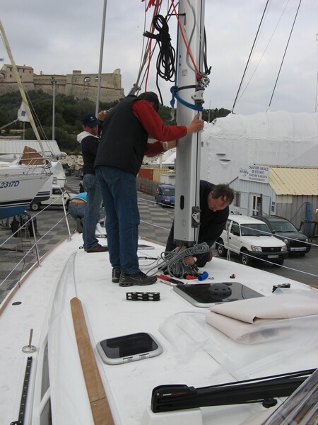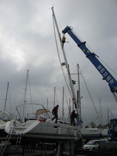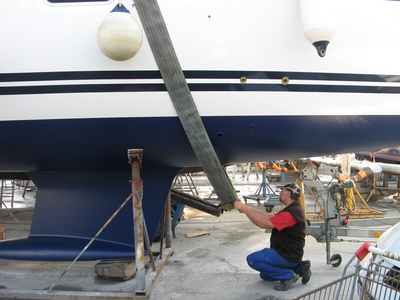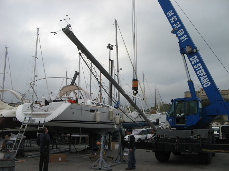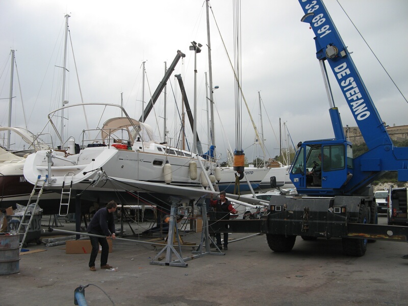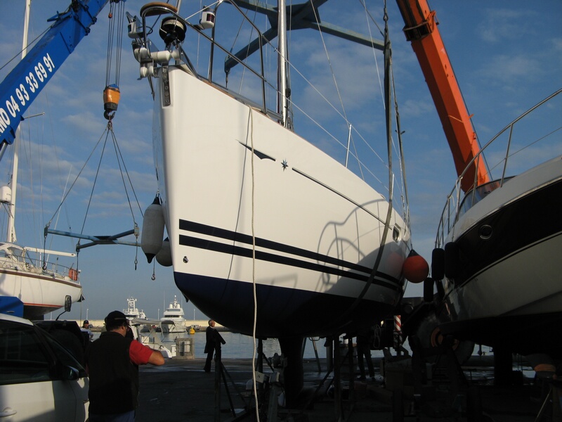 Das Boot lag nur deshalb schon im Wasser, weil am Trockenen kein Platz war. Es wurde am Montag heraus gekrant um das Antifouling anzubringen und die restlichen Arbeiten am Boot zu erledigen.