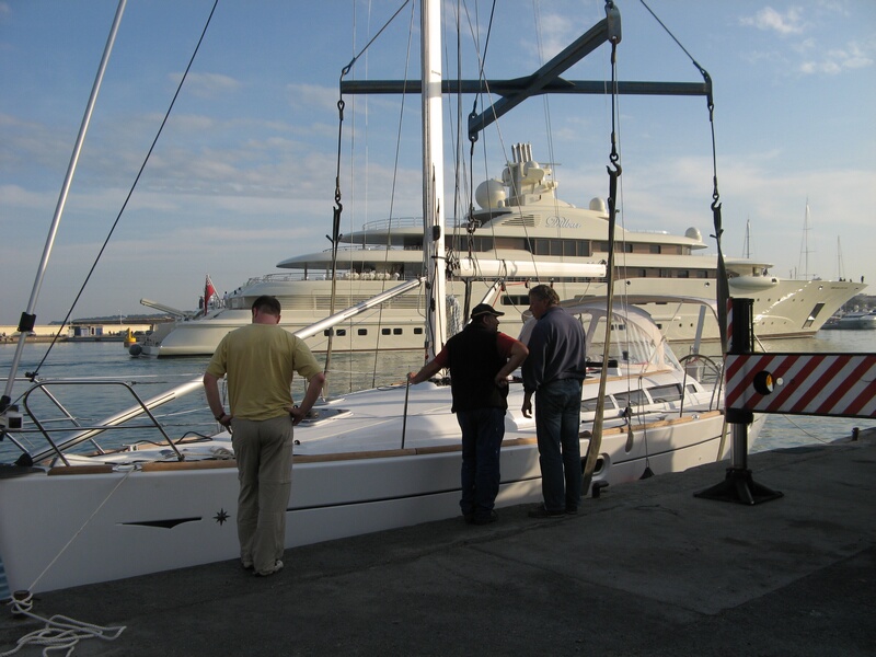 Die Woche verflog genau so rasch wie die vorangegangenen. Am Donnerstag war es dann endlich so weit. Das Boot kam zurück ins Wasser und wurde von uns am Freitag nach einer Probefahrt offiziell übernommen.