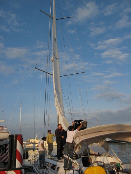 Daneben liegt die große Schwester eine Sun Odyssey 44i, die am nächsten Tag nach Koper überstellt werden soll.