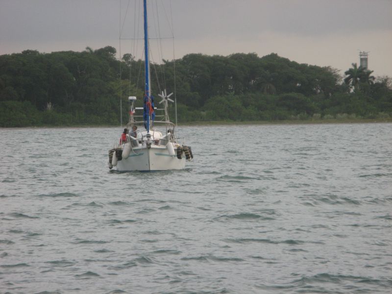 Vor uns der Wellenbrecher von Colon, die Zufahrt zum Panamakanal. Davor warten einige Frachter auf den Termin für ihre Durchfahrt. Und auch wir wollen unsere Aroha in den nächsten zwei Wochen in der Shelter Bay Marina dafür vorbereiten, gründlich putzen und kleinere Wartungsarbeiten durchführen. Und mit einem anderen Segelboot als Linehandler einmal probeweise den Transit üben. Soviel zum Plan. In der Realität funken wir jenseits des Wellenbrechers die Marina an, um die Nummer unseres Liegeplatzes zu erfragen. Worauf man uns nur mitteilt „kein Platz mehr frei“. Das hatten wir schon befürchtet, denn obwohl ich im Dezember mehrmals einen Platz reserviert habe, kein Problem, es ist genug frei, hat niemals jemand etwas aufgeschrieben. Ich verhandle mit dem Dockmaster und er gewährt uns gnädig eine Woche, dann schmeißen sie uns raus. Dafür müssen wir aber einen Agenten nehmen, er empfiehlt einen Eric, sonst würden wir das nicht schaffen. Da wir keine Wahl haben, müssen wir die Bedingungen akzeptieren.