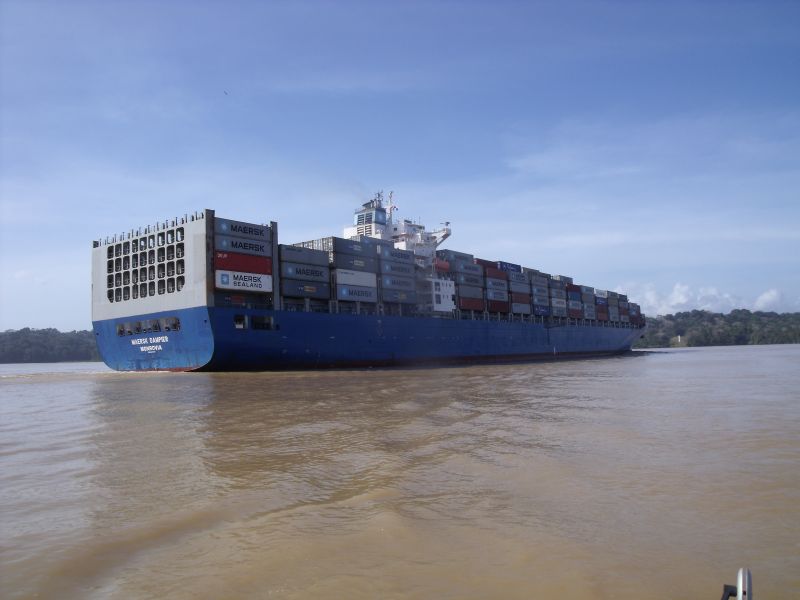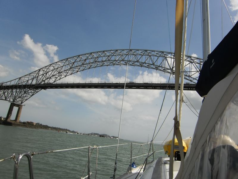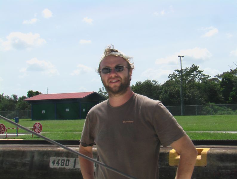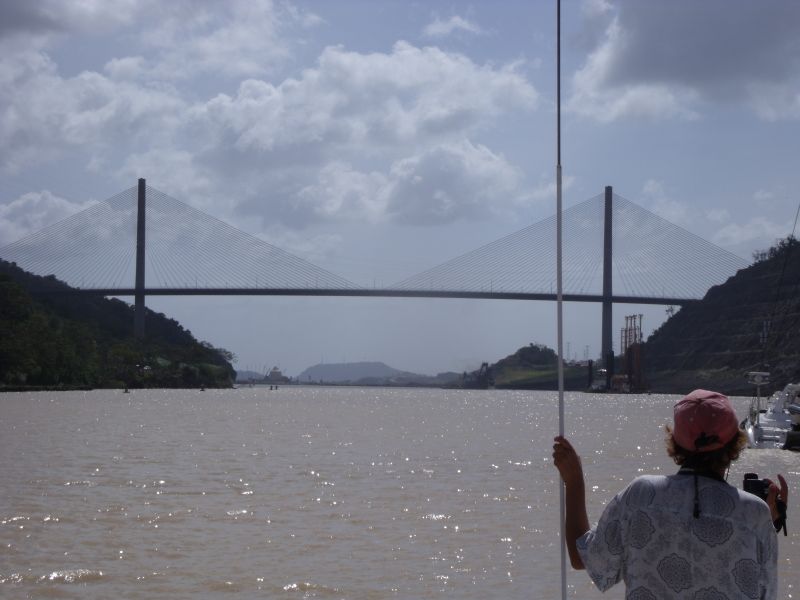 Pünktlich um 6 Uhr trifft unser neuer Adviser ein und wir müssen sofort Anker auf gehen, damit wir rechtzeitig den Gatunsee durchquert haben, um zu Mittag bei der Miguel-Schleuse zu sein. Es ist ein sehr beschauliche Fahrt über den See. An vielen Stellen kann man die Erweiterungsarbeiten für das 3. Schleusenset beobachten, die bis zur 100-Jahrfeier 2014 fertiggestellt sein soll. Bei der Schleuse müssen wir schon wieder warten. Danach werden wir diesmal in einem 3er-Päckchen hinunter geschleust. Zwischen der Miguel und der Miraflores-Schleuse steigt unser Unbehagen an, da wir wieder warten müssen aber diesmal zusammengeschnürt und das weckt unangenehme Erinnerungen an den Vortag. Diesmal hat auch der Kat seine Reifen angebracht, die Schnürchen sind aber so mickrig, dass sie sicher kein bisschen Zug aushalten würden. In der Miraflores Schleuße findet dann das übliche Winken an die Familie per Webcam statt. Auch wenn das Bild so klein ist, dass man nur raten kann, wer wer ist. Um 13:28 Uhr öffnen sich die letzten Schleusentore und wir fahren in den Pazifik ein.
