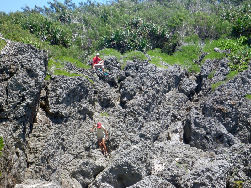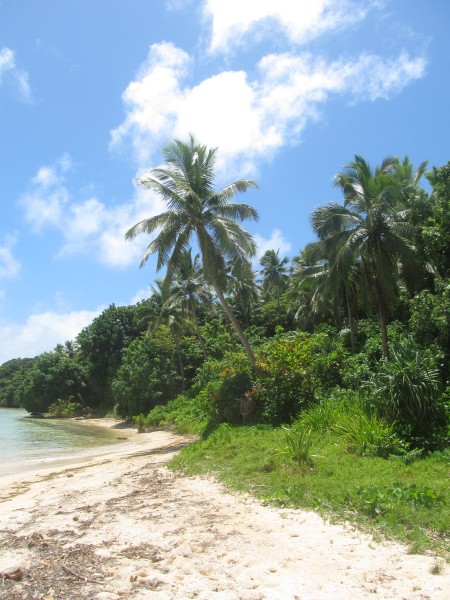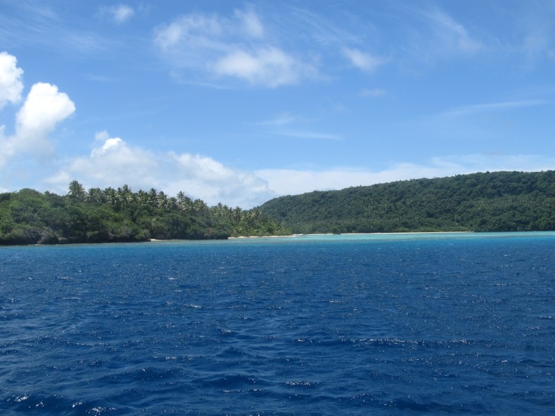 Nachdem die Beamten einen Haufen Formulare in unserem Cockpit ausgefüllt und einen Liter Wein erschnorrt haben, verlegen wir uns vom Zollpier an eine Mooring in der Nähe der Sail Away. Auch zahlreiche andere deutschsprachige Schiffe bevölkern die Bucht vor Neiafu. Einen Tag später gesellt sich auch Freyja dazu. Der Ort Neiafu besteht lediglich aus einer zufälligen Ansammlung von Häusern, Geschäften und einigen Lokalen. Die Lebensmittelgeschäfte sind mit wenig mehr als den Grundnahrungsmittel bestückt. Ein kleiner Markt verkauft lokales Gemüse und Äpfel aus Neuseeland. Wie schon in Samoa sind auch hier viele Männer und Frauen mit Röcken bekleidet, die meisten tragen darüber noch einen aus Bast? geflochtenen Überrock. Wir stocken unsere Frischvorräte auf, danach segeln wir gemeinsam mit Freyja Richtung Osten. Wegen des trüben Wetters müssen wir die Riffdurchfahrt auf den nächsten Tag verschieben, da wir ohne Sonne die gefährlichen Untiefen, die sich nur durch unterschiedliche Farbschattierungen auszeichnen, nicht sehen können. Wir übernachten in Tapana Süd, wo wir viele Flughunde sehen. Bei wieder sonnigem Wetter schlängeln wir uns durch die Riffe zu einem Ankerplatz vor der kleinen Insel Kenutu. Wir steigen einen kleinen Pfad auf Kenutu hinauf, um auf die andere Seite der Insel zu gelangen, wo wir uns an der ungeschützten Außenseite von Vava'u befinden und dem Spiel der Wellen, die auf die Felsen klatschen, zusehen können. Eine Felskraxelei führt uns zu einem schönen Aussichtspunkt, von dem aus wir das Riff neben unserem Ankerplatz bewundern können.