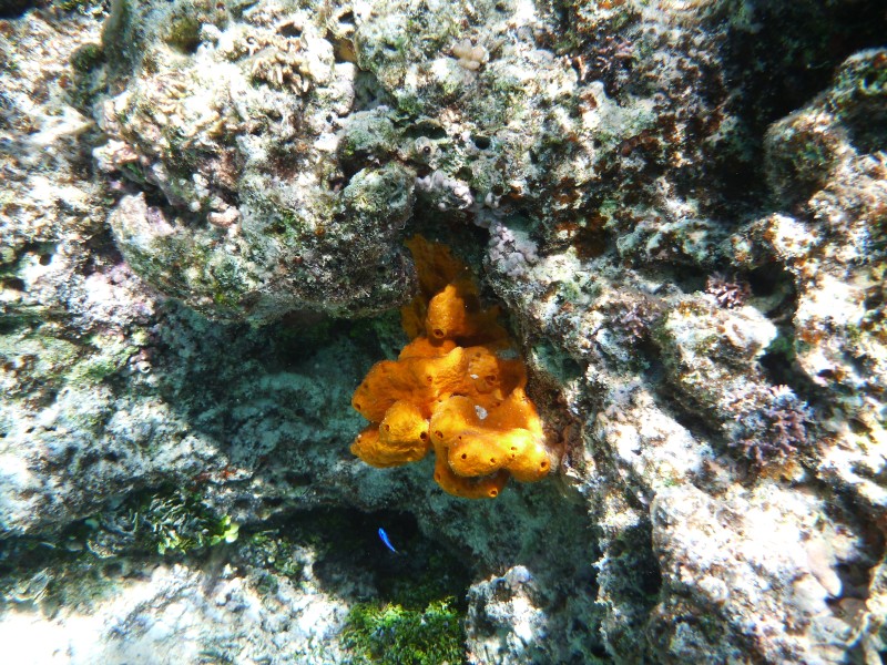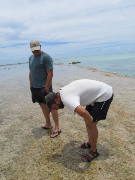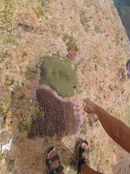 Und es macht viel Spaß, dass man zwischen Korallen, Seegurken, Muscheln und anderem Getier spazieren gehen kann. Wir finden auch einen Fisch, der es nicht mehr ins Wasser geschafft hat und retten ihm das Leben.